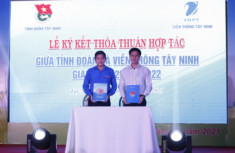 Dịp này, Tỉnh đoàn ký kết thỏa thuận hợp tác về viễn thông – công nghệ thông tin và truyền thông với VNPT Tây Ninh (giai đoạn 2021 – 2022) nhằm khai thác và phát huy thế mạnh trên các lĩnh vực hoạt động, phù hợp với yêu cầu phát triển của mỗi bên trên cơ sở tuân thủ các quy định của Đảng, Nhà nước, các định hướng phát triển ứng dụng CNTT hiện hành phục vụ công tác Đoàn và phong trào thanh thiếu nhi tỉnh nhà.