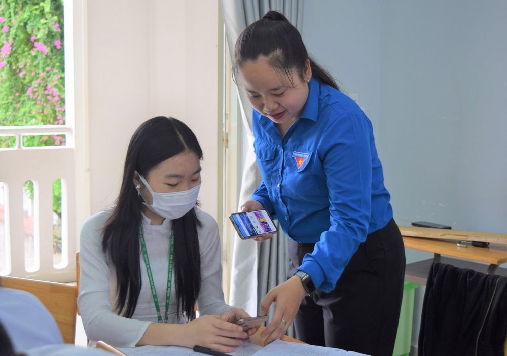 Đoàn công tác hỗ trợ học sinh cập nhật thông tin đoàn viên từ Ứng dụng Thanh niên Việt Nam lên hệ thống Phần mềm Quản lý đoàn viên