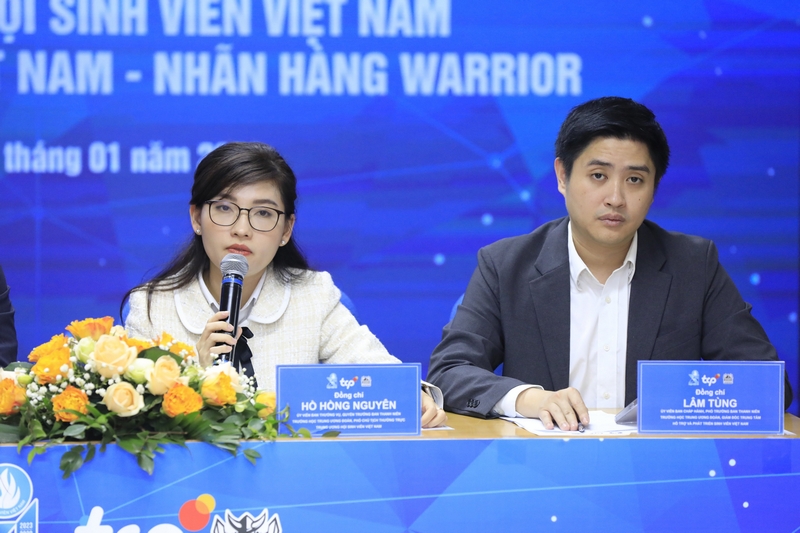 Đồng chí Hồ Hồng Nguyên - Ủy viên Ban Thường vụ, Trưởng Ban Thanh niên trường học T.Ư Đoàn, Phó Chủ tịch thường trực T.Ư Hội Sinh viên Việt Nam và đồng chí Lâm Tùng - Ủy viên BCH, Phó trưởng Ban Thanh niên trường học T.Ư Đoàn, Giám đốc Trung tâm hỗ trợ và phát triển sinh viên Việt Nam trao đổi với báo chí và các bạn sinh viên về Giải thể thao sinh viên Việt Nam VUG 2023
