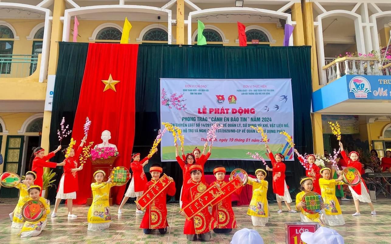 Tại lễ phát động, các em học sinh được tuyên truyền Luật số 14/2017/QH14 về quản lý, sử dụng vũ khí, vật liệu nổ, công cụ hỗ trợ; Nghị định 137/2020/NĐ-CP về quản lý, sử dụng pháo. BTV Tỉnh đoàn - HĐĐ tỉnh đã trao hòm thư “Cánh én báo tin” cho Liên đội Tiểu học Kim Đồng và tổ chức cho các Chi đội ký cam kết thực hiện.