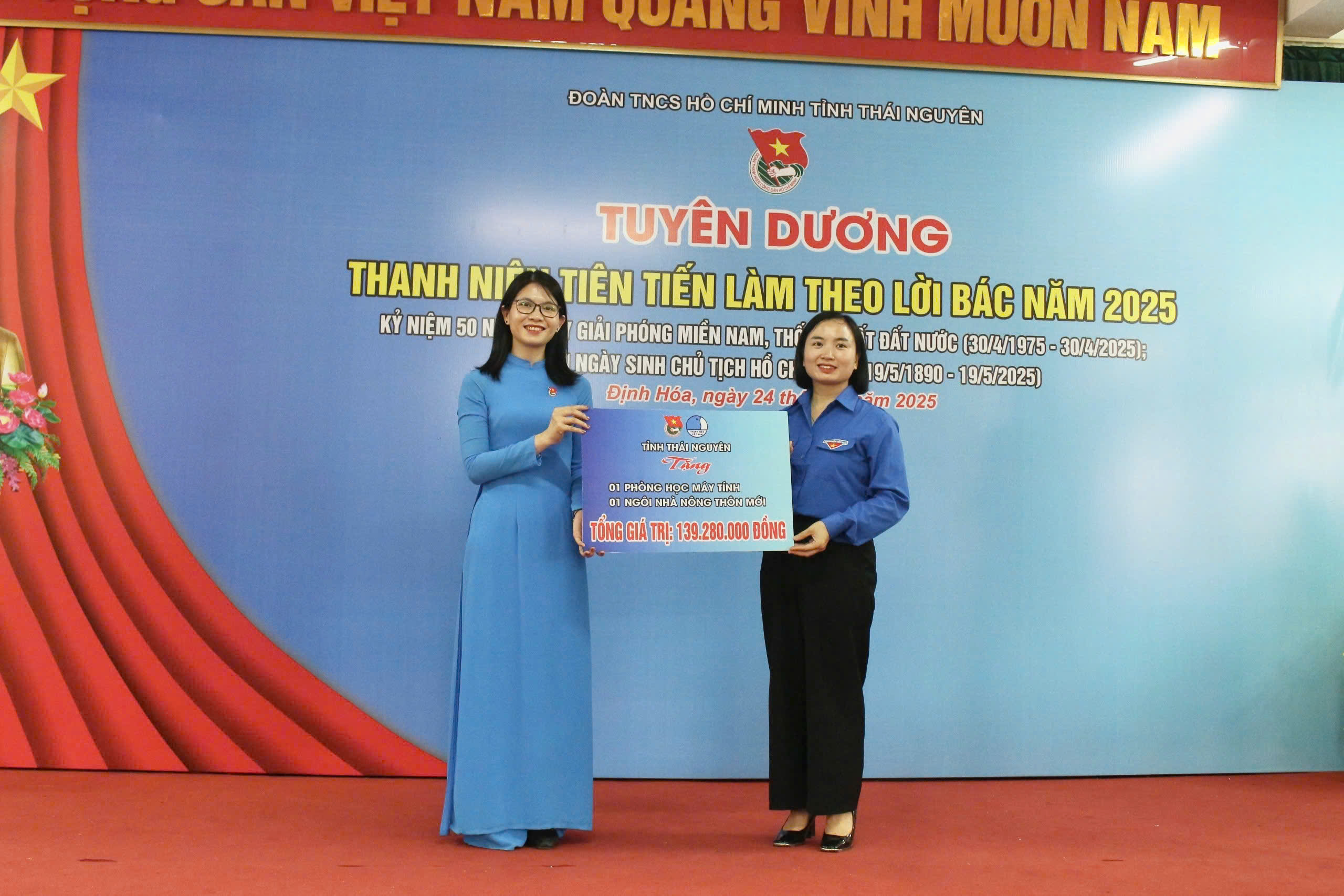 Dịp này, Tỉnh đoàn Thái Nguyên đã trao tặng công trình thanh niên và quà tặng tổng trị giá gần 170 triệu đồng. Ban Thường vụ Tỉnh đoàn, Hội LHTN Việt Nam tỉnh, Hội đồng Đội tỉnh dành tặng 40 suất quà cho các cựu chiến binh, cựu thanh niên xung phong và học sinh có hoàn cảnh khó khăn trên địa bàn huyện.