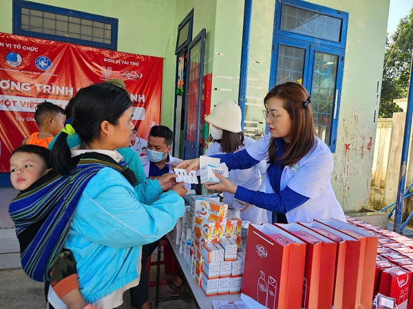 Với sự đồng hành của Hội Thầy thuốc trẻ Việt Nam và nhãn hàng Lifebuoy, đoàn tình nguyện đã khám bệnh, phát thuốc và tặng quà cho 500 người dân và 20 suất học bổng cho thiếu nhi.