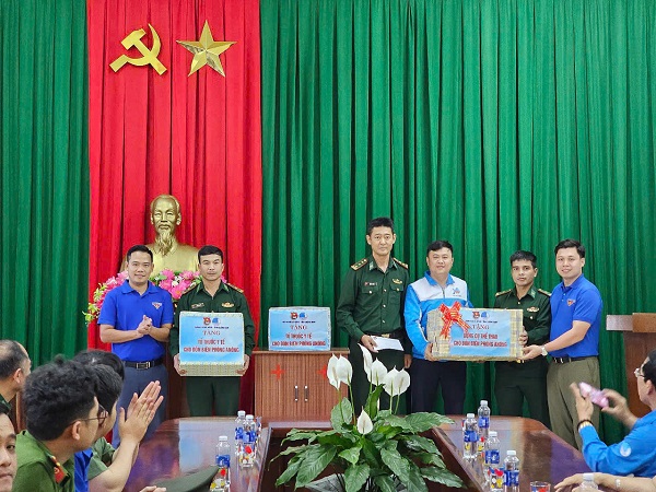 Thăm và tặng quà, tủ thuốc y tế và dụng cụ thể thao cho chiến sĩ Đồn Biên phòng A Nông.
