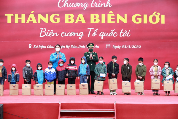 Bên cạnh đó, chương trình cũng tặng quà cho Bộ đội biên phòng tỉnh Nậm Cắn; tặng quà cho Tỉnh đoàn Xiêng Khoảng và Bộ đội biên phòng tỉnh Xiêng Khoảng (Lào); trồng "Hàng cây hữu nghị thanh niên Việt Nam-Lào"; khám, tặng quà cho 20 hộ gia đình chính sách; tặng cờ Tổ quốc cho người dân; lắp đặt và trao tặng cột cờ Tổ quốc cho các gia đình bảo vệ đường biên; khởi công xây dựng điểm trường Bản Pà Ca thuộc Trường mầm non Nậm Cắn, xã Nậm Cắn, huyện Kỳ Sơn; trao tặng biển tượng trưng xây dựng điểm trường Bản Mường Piệt thuộc Trường Tiểu học Thông Thụ 1, xã Thông Thụ, huyện Quế Phong, tỉnh Nghệ An; 01 ngôi nhà hạnh phúc cho học sinh dân tộc mồ côi có hoàn cảnh khó khăn. Tổng giá trị nguồn lực 2,66 tỷ đồng./.