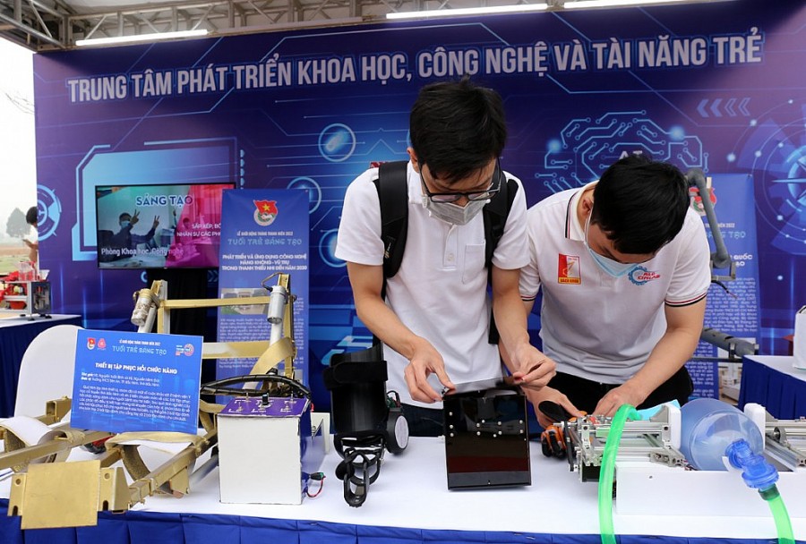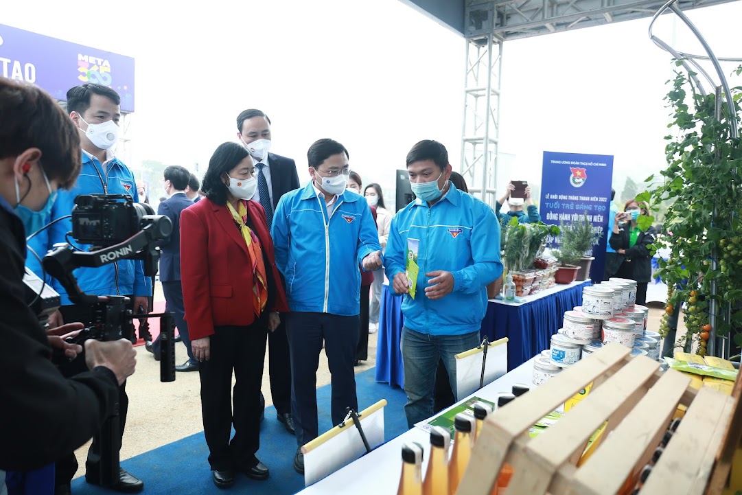 Các đại biểu tham quan hoạt động khởi động Tháng Thanh niên 2022 với chủ đề "Tuổi trẻ sáng tạo"