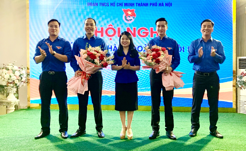 Thường trực Thành đoàn Hà Nội tặng hoa chúc mừng hai tân Phó Bí thư Thành đoàn Hà Nội.