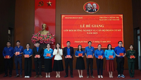 Lớp bồi dưỡng diễn ra trong 2,5 ngày, từ ngày 29/12 - 31/12/2025 với sự tham gia của 75 đồng chí là Bí thư, Phó Bí thư, UVTV, UVBCH các tổ chức cơ sở Đoàn của các xã, phường trên địa bàn Thành phố Huế, Đoàn UBND thành phố, Đoàn Bộ đội Biên phòng thành phố, Đoàn Bộ Chỉ huy Quân sự thành phố.