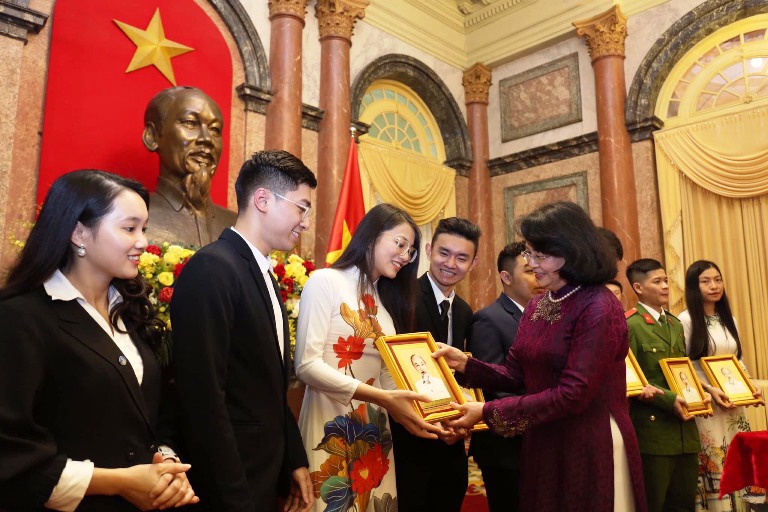 Phó Chủ tịch nước Đặng Thị Ngọc Thịnh trao Giải thưởng Sao Tháng Giêng cao quý cho bạn Trình Hồng Chuyên sinh viên trường Cao đẳng Y tế Thanh Hóa