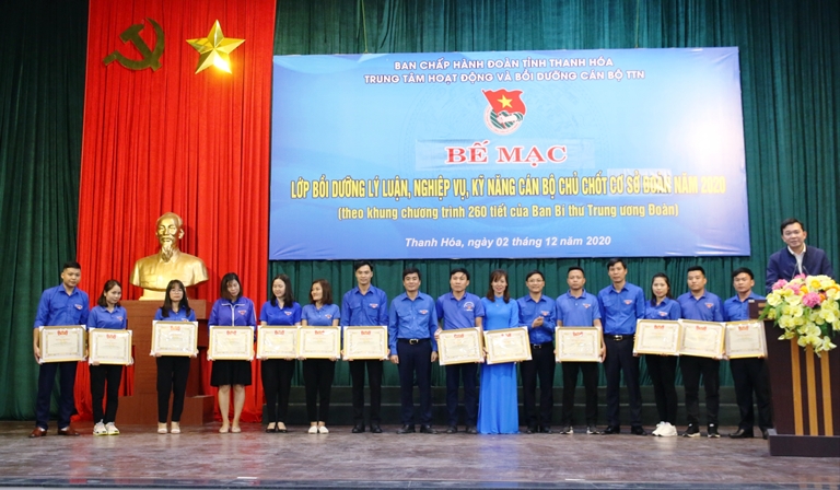 Tại chương trình, BTV Tỉnh đoàn đã trao bằng khen của BCH Tỉnh đoàn cho 13 đồng chí cán bộ đoàn cơ sở tiêu biểu xuất sắc trong toàn khóa học; Ban Giám đốc Trung tâm đã trao 01 giải nhất, 02 giải nhì, 03 giải ba cuộc thi Bí thư chi đoàn giỏi và, trao 133 giấy chứng nhận cho các học viên.