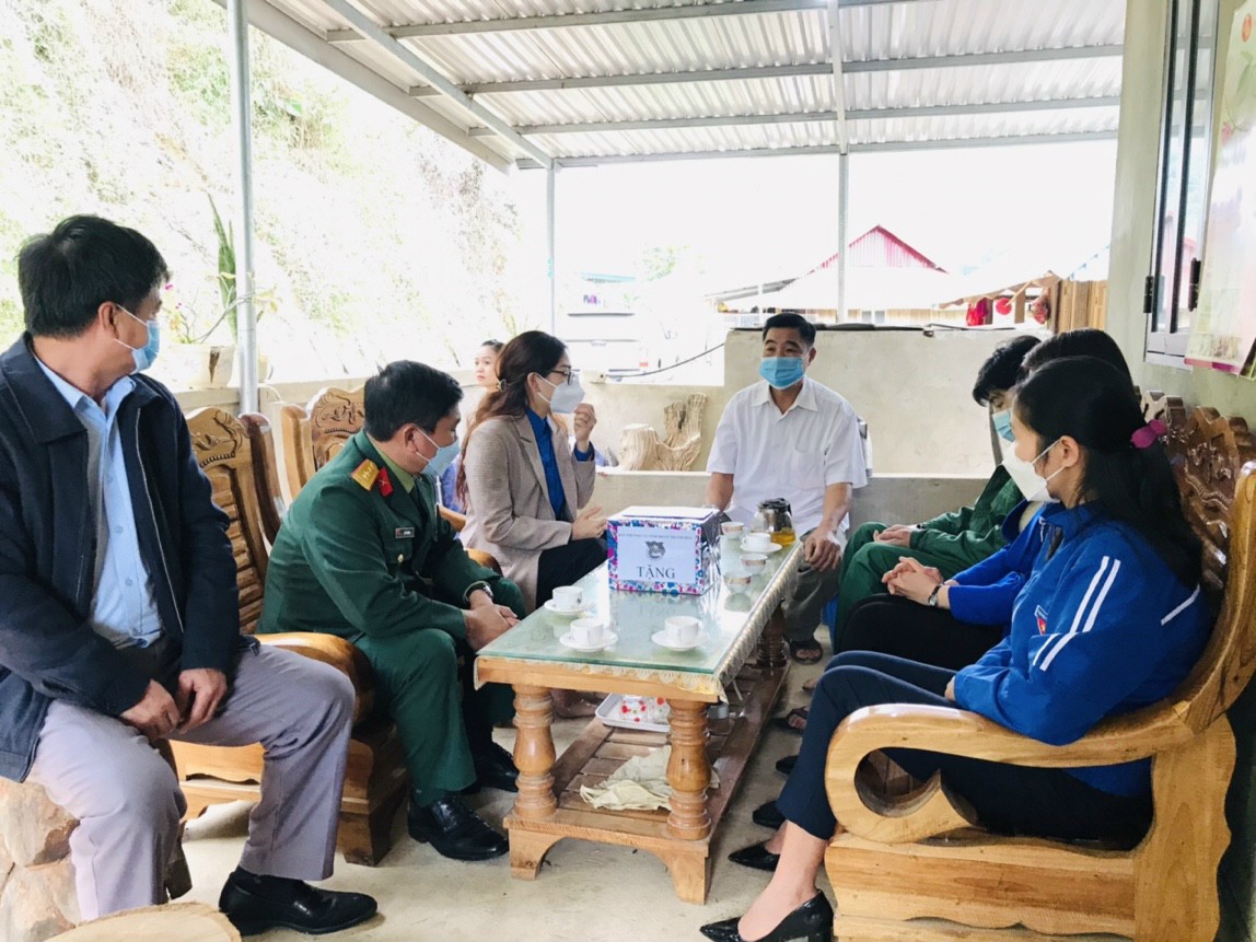 Đồng chí Phùng Tố Linh - Phó Bí thư Tỉnh đoàn thăm hỏi tặng quà cho tân binh trước khi lên đường nhập ngũ và quân nhân hoàn thành nhiệm vụ trở về địa phương tại huyện Quan Hóa.