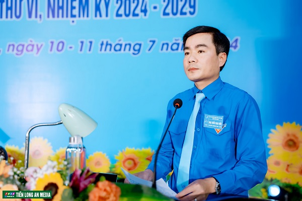 Đồng chí Lê Văn Châu, Tỉnh ủy viên, Bí thư Tỉnh đoàn, Chủ tịch Hội Liên hiệp Thanh niên Việt Nam tỉnh Thanh Hóa phát biểu chỉ đạo tại Đại hội đại biểu Hội LHTN Huyện Đông Sơn.