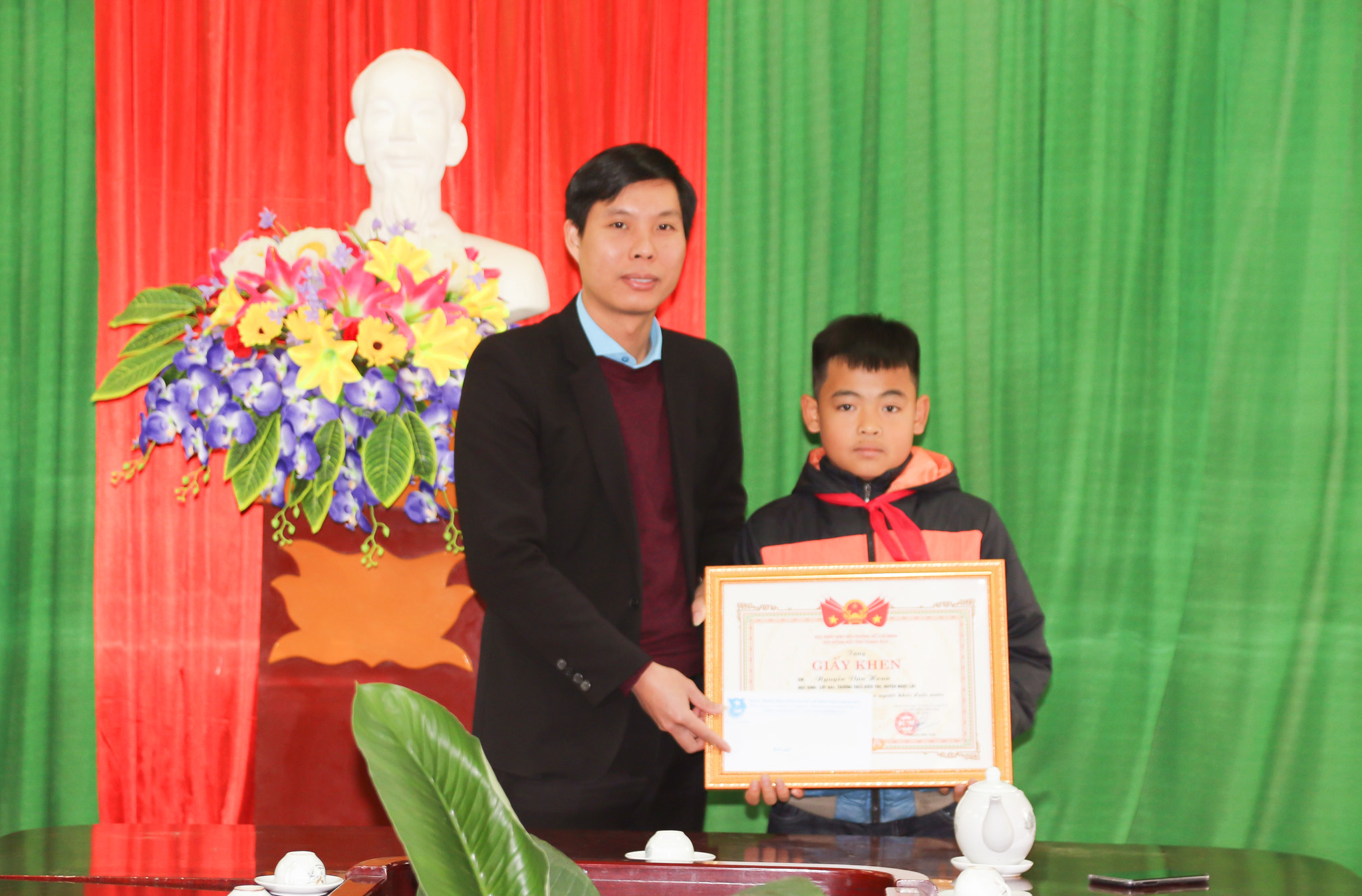 Ghi nhận hành động đẹp này, đồng chí Nguyễn Hữu Tuất - Phó Bí thư Tỉnh đoàn, Chủ tịch Hội đồng Đội tỉnh đã trao tặng bằng khen của BCH Tỉnh Đoàn và phần thưởng cho em Nguyễn Văn Hoan.