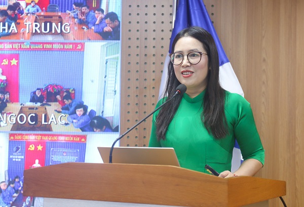 Phó Bí thư Tỉnh đoàn Phùng Tố Linh phát biểu tại hội nghị.
