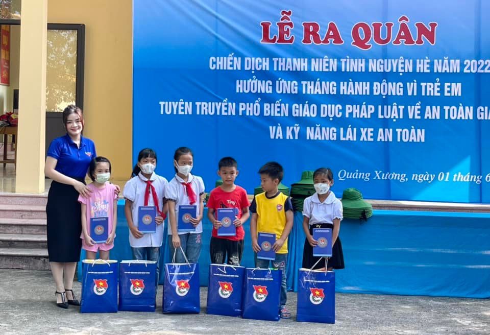 Huyện đoàn Quảng Xương trao tặng 06 suất quà cho các em học sinh có hoàn cảnh khó khăn trên địa bàn thị trấn Tân Phong; mỗi suất quà trị giá 500.000 đồng (trong đó tiền mặt và hiện vật bao gồm sữa, bánh...) với tổng trị giá 3 triệu đồng.