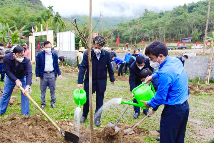 Sau hồi trống phát động Tết trồng cây Xuân Nhâm Dần 2022 của đồng chí Đào Xuân Yên - Ủy viên BTV, Trưởng ban Tuyên giáo Tỉnh ủy, các đồng chí lãnh đạo tỉnh, lãnh đạo huyện và đại biểu cùng bà con nhân dân, đoàn viên thanh niên đã ra quân trồng cây xanh trong khuôn viên nhà văn hóa thôn Nê Cắm và Nơi thành lập Chi bộ Đảng, tiền thân của Đảng bộ huyện Lang Chánh./.