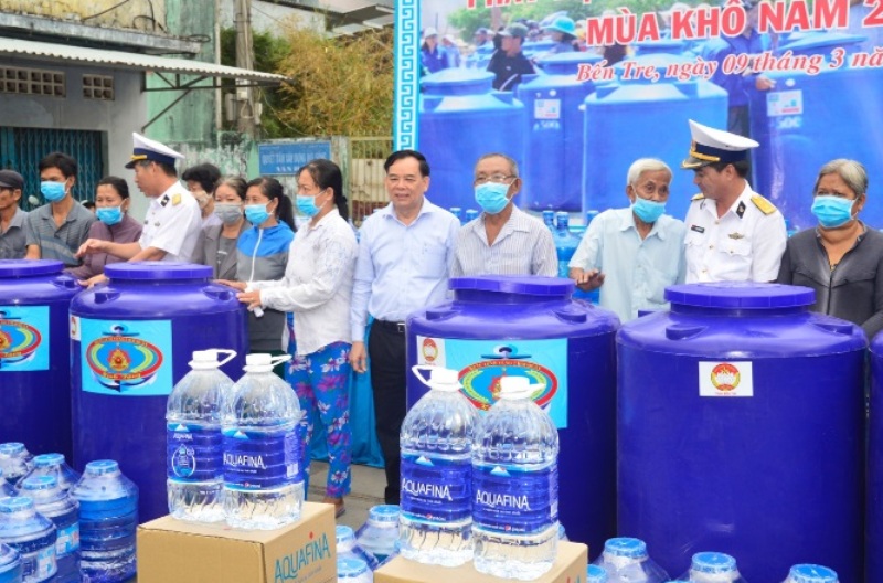 Để tiếp thêm nguồn lực hỗ trợ cho người dân, sáng ngày 9/3/2020, Ban Thường vụ Tỉnh đoàn phối hợp với Công ty TNHH Nước giải khát Suntory PepsiCo Việt Nam trao tặng 2.000 thùng nước Aquafina 5 lít, tương đương 40.000 lít nước, 05 máy lọc nước; Công ty Viettel chi nhánh Bến Tre tặng 2.000 thùng nước loại 20 lít, 20 bồn chứa nước, hỗ trợ các hộ nghèo tại 02 huyện Châu Thành, Bình Đại và trường Trẻ em khuyết tật tỉnh Bến Tre.