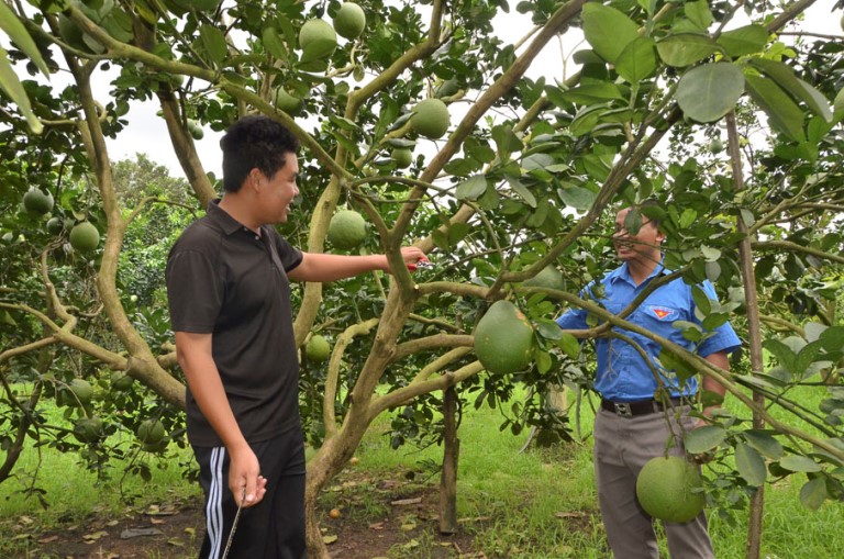 Cũng mạnh dạn trồng cây bưởi da xanh, anh Phan Quang Chung, 21 tuổi, hiện đang sở hữu 1,2 ha trồng bưởi da xanh 5 năm tuổi. Học hỏi kỹ thuật trồng trọt, chăm sóc cây cẩn thận, đúng quy trình, vườn bưởi của anh cho năng suất ổn định, trái ngon, ngọt, được thị trường ưa chuộng. “Vườn bưởi của gia đình tôi có 150 gốc, mỗi năm cho 2 vụ trước và sau Tết, cộng thêm 1 vụ trái mùa cũng giúp tôi có thu nhập từ 250-300 triệu đồng/năm. Đặc biệt, với kỹ thuật kích cho hoa gối vụ, tôi đã có thu nhập tốt hơn. Nếu bình thường bưởi da xanh có giá khoảng 32.000-40.000 đồng/kg thì dịp Tết, bưởi đẹp có giá đến 60.000 đồng/kg”, anh Chung nói.