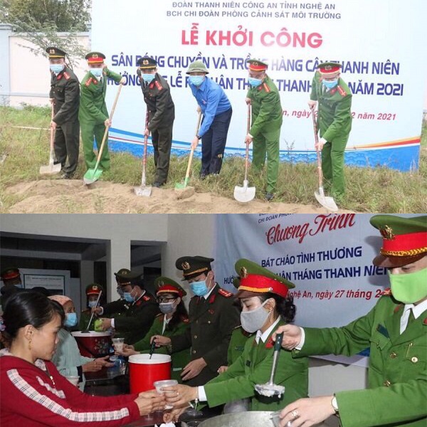 Đoàn khối CCQ và Đoàn khối Doanh nghiệp trao 02 công trình “Điểm vui chơi cho thanh thiếu nhi” và “Đường hoa thanh niên kiểu mẫu” với tổng trị giá gần 60 triệu đồng tại xã Nghi Tiến, Nghi Lộc. ĐVTN huyện Hưng Nguyên bàn giao sân chơi cho các em thiếu niên nhi đồng và bà con nhân dân tại xóm 7, xã Hưng Yên Nam trao tặng Nhà nhân ái cho Cựu cán bộ Đoàn có hoàn cảnh khó khăn tại xóm 3, xã Hưng Yên Nam, trị giá gần 60 triệu đồng. Tuổi trẻ huyện Yên Thành trồng hàng cây thanh niên dài 1km với 200 cây sao đen tại xã Tăng Thành. ĐVTN huyện Quỳ Hợp Trao tặng 01 sân bóng chuyền và Phát động trồng cây hưởng ứng Tết trồng cây Đời đời nhớ ơn Bác Hồ tại xã Châu Thái. Ban Thường vụ Huyện đoàn Nghĩa Đàn tổ chức khởi công xây dựng mô hình “Cột mốc Trường Sa” tại trường Tiểu học Nghĩa An nhằm giáo dục truyền thống yêu nước cho đoàn viên, thanh niên, thiếu niên nhi đồng toàn huyện. Tuổi trẻ huyện Thanh Chương tổ chức ra quân Tết trồng cây – Đời đời nhớ ơn Bác Hồ, Xuân Tân Sửu năm 2021 tại xã Cát Văn; Bàn giao công trình sân chơi cho thiếu nhi vùng biên giới với tổng kinh phí 20 triệu đồng. Đoàn Trường Cao Đẳng DLTM Nghệ An đã hỗ trợ các bạn sinh viên cây giống, phân bón, kỹ thuật và cùng các bạn lớp 9+ làm vườn rau thanh niên trong khuôn viên nhà trường.