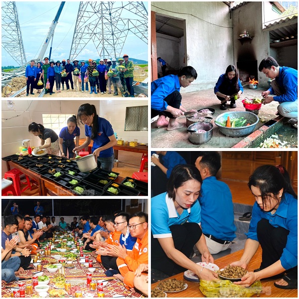Các tình nguyện viên còn tham gia hỗ trợ điều tiết giao thông tại các tuyến đường có đường dây đi qua, đồng thời tổ chức tặng quà, động viên các lực lượng thi công đường điện 500 kV trên địa bàn, tặng quà động viên các gia đình phải di dời. Tuổi trẻ Nghệ An và các huyện Yên Thành, Diễn Châu, Nam Đàn, Quỳnh Lưu và thị xã Hoàng Mai còn có những mô hình sáng tạo như tổ chức “Bữa cơm công trường”, “Bát nước công trường” động viên kịp thời cho đội ngũ thi công dự án, cùng nhau nấu hàng trăm suất cơm công trường. Bữa cơm được các bạn đoàn viên, thanh niên chuẩn bị sạch sẽ, đảm bảo đủ chất dinh dưỡng, giúp lực lượng công nhân thi công đường điện được đảm bảo sức khỏe. Đồng thời, hỗ trợ chỗ nghỉ cho các đội công nhân thi công tại các điểm móng cột; tổ chức gặp mặt giao lưu văn hóa, văn nghệ động viên tinh thần cho đội ngũ công nhân…