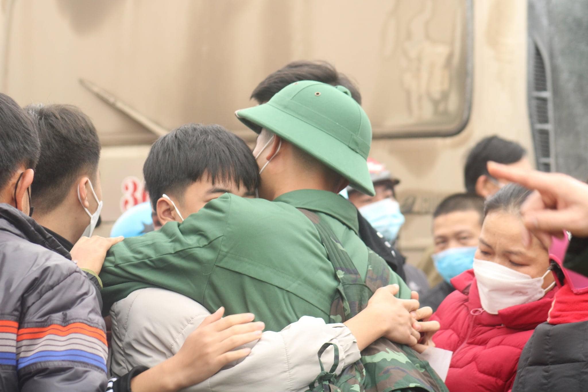 Các tân binh bịn rịn chia tay người thân để lên đường nhập ngũ
