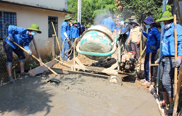 Đoàn viên thanh niên tham gia làm đường bê tông nông thôn