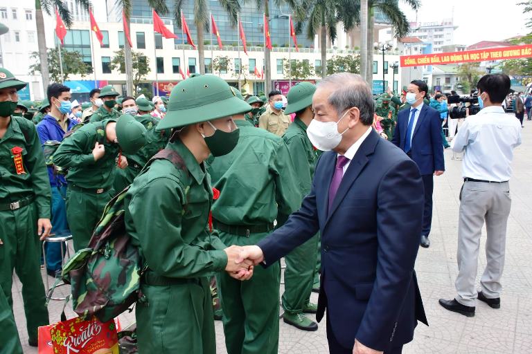Bắt tay động viên các tân binh, Chủ tịch UBND tỉnh Phan Ngọc Thọ nhắc nhở, dù bất cứ hoàn cảnh nào, các tân binh cũng phải làm tròn trách nhiệm; giữ vững kỷ cương, kỷ luật quân sự; sớm hoàn thành nghĩa vụ trở về địa phương.