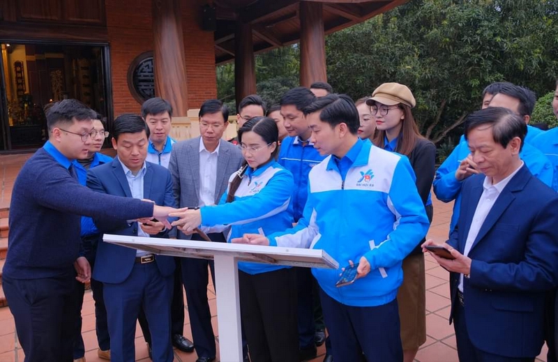 Các đại biểu dự Lễ ra mắt “Không gian bản đồ số các địa chỉ đỏ giáo dục truyền thống của Đoàn Thanh niên tỉnh Thái Nguyên” tại ATK Định Hóa.