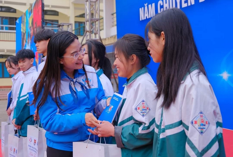 Bí thư Trung ương Đoàn Nguyễn Phạm Duy Trang tặng quà, học bổng cho học sinh có hoàn cảnh khó khăn ở huyện Định Hóa