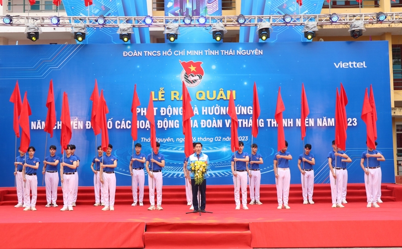 Đồng chí Đoàn Quang Duy - Ủy viên BCH Trung ương Đoàn, Bí thư Tỉnh đoàn Thái Nguyên phát biểu phát động Tháng Thanh niên năm 2023.