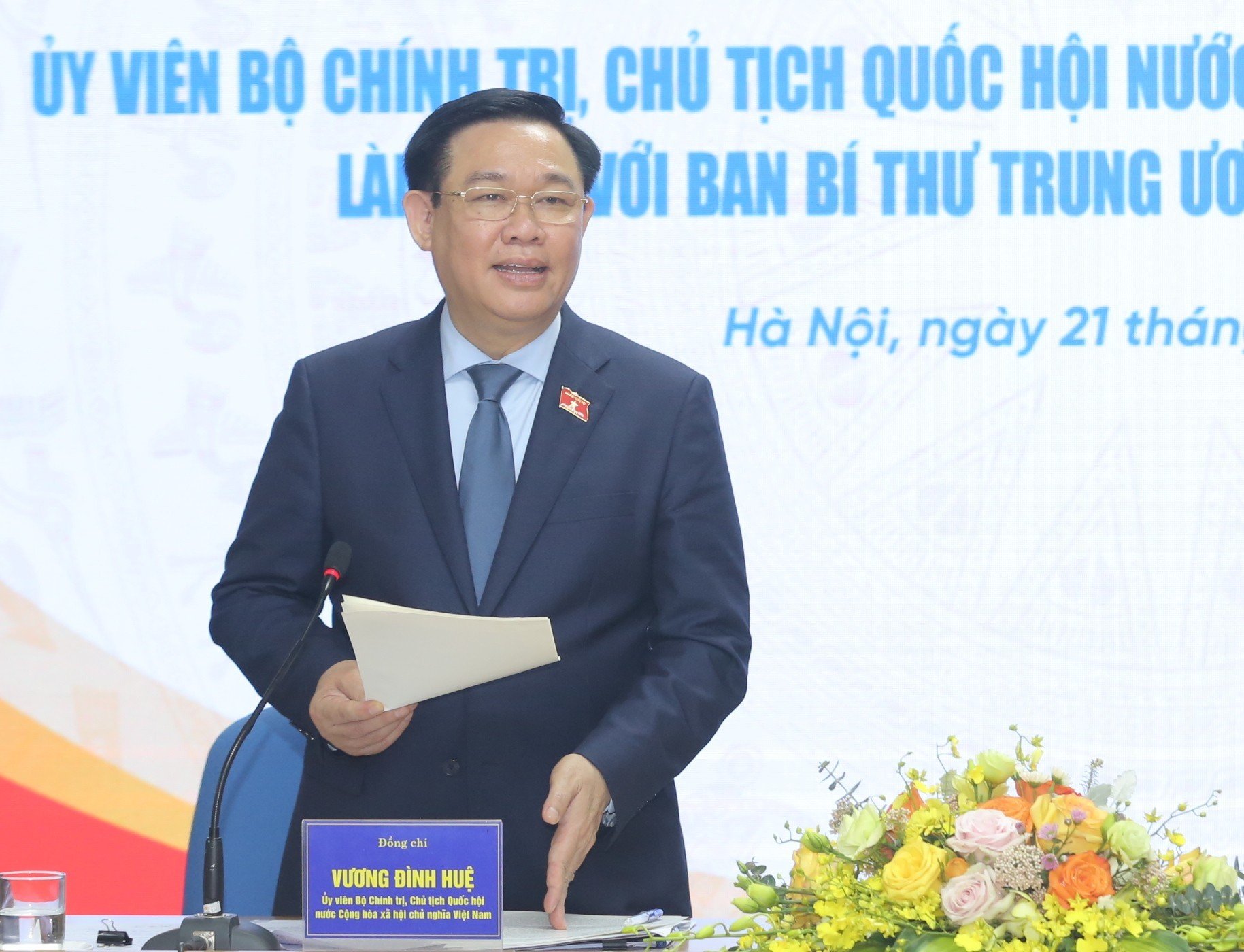 Chủ tịch Quốc hội Vương Đình Huệ tặng hoa chúc mừng Ban Bí thư Trung ương Đoàn nhân kỷ niệm 92 năm Ngày thành lập Đoàn Thanh niên Cộng sản Hồ Chí Minh (26.3.1931 – 26.3.2023)