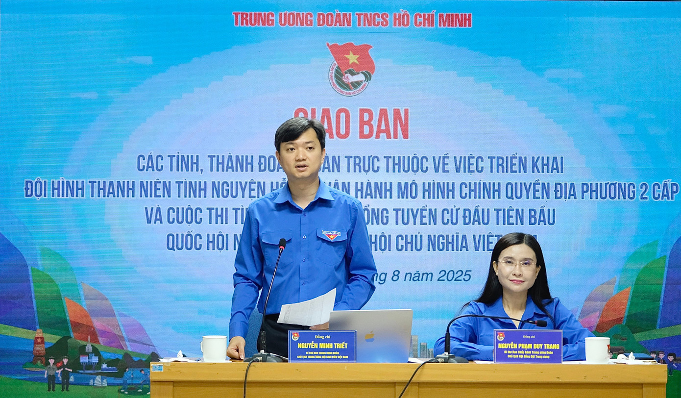 Phát biểu tại Hội nghị giao ban, anh Nguyễn Minh Triết - Bí thư T.Ư Đoàn, Chủ tịch T.Ư Hội SVVN lưu ý, các tỉnh, thành Đoàn cập nhật nhiệm vụ mới của các đội hình hỗ trợ vận hành mô hình chính quyền hai cấp, như hỗ trợ triển khai nền tảng “Mặt trận số”, thẻ đảng viên… Đồng thời, rà soát và xác lập một số chỉ tiêu để triển khai thực hiện quyết liệt, vì đây là việc mới.