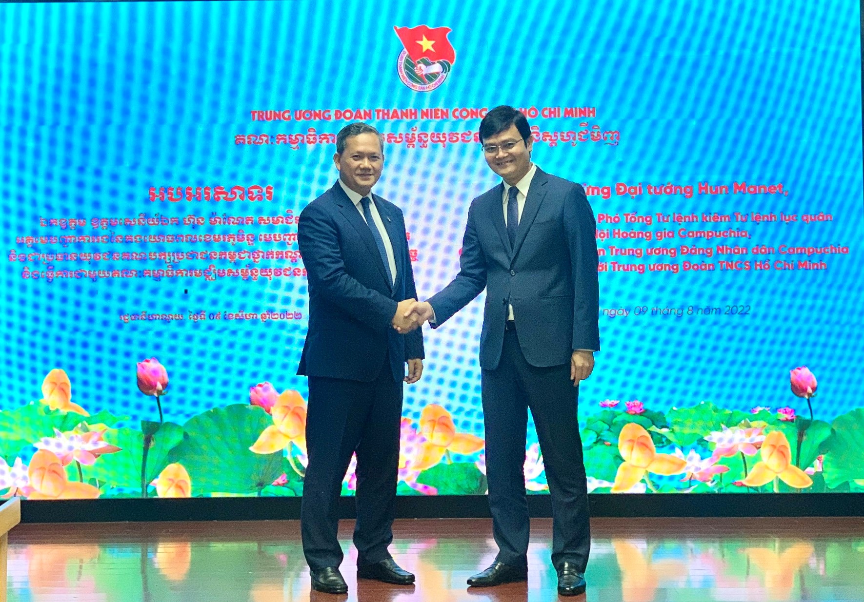 Đồng tình với những đánh giá về đề xuất của Bí thư Thường trực T.Ư Đoàn Bùi Quang Huy, Đại tướng Hun Manet cho biết, sẽ quan tâm chỉ đạo để T.Ư Đoàn TNCS Hồ Chí Minh và Ban Thanh niên Đảng Nhân dân Campuchia sớm có ký kết chương trình phối hợp trong thời gian tới.