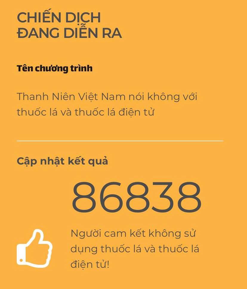 Chiến dịch hiện đã nhận được hơn 86 nghìn người cam kết không sử dụng thuốc lá và thuốc lá điện tử