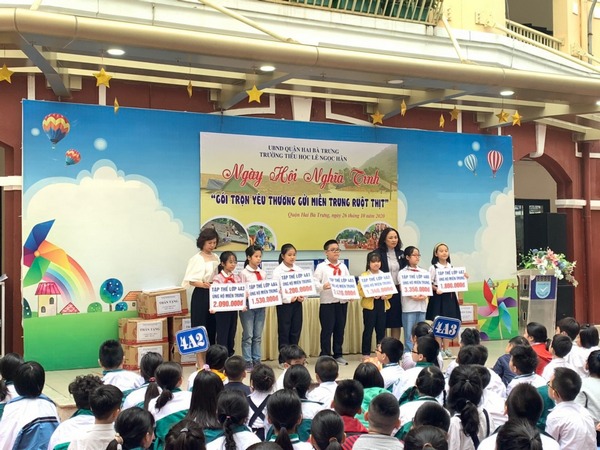 Theo đó, trong ngày 26/10, các Liên đội tại các trường Tiểu học, Trung học cơ sở trên địa bàn thành phố Hà Nội đồng loạt tổ chức hội thu sữa, sách vở, đồ dùng học tập, nhu yếu phẩm,… gửi đến thanh thiếu nhi và Nhân dân các tỉnh miền Trung chịu ảnh hưởng bởi cơn bão số 6.