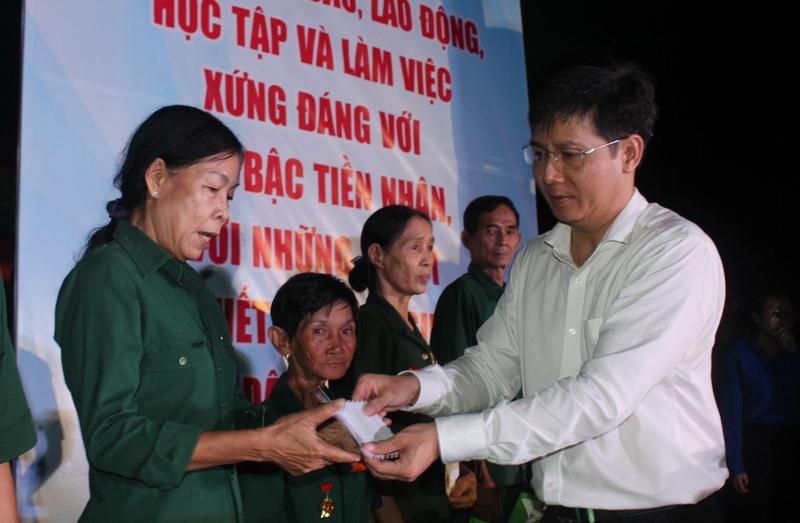 Thể hiện lòng thành kính, biết ơn sâu sắc đối với công lao to lớn của các thế hệ cha anh đã hy sinh vì độc lập, tự do, hoà bình của dân tộc, Trung tá Đồng Đức Vũ thay mặt cho tuổi trẻ các đơn vị gửi tới các mẹ Việt Nam anh hùng, các đồng chí thương binh, bệnh binh, thân nhân các gia đình liệt sĩ, gia đình có công với cách mạng lời thăm hỏi ân cần và thân thiết nhất.
