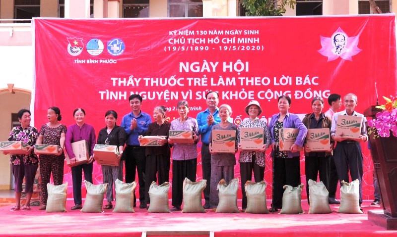 Tặng quà cho người dân có hoàn cảnh khó khăn tại Ngày hội “Thầy thuốc trẻ làm theo lời Bác, tình nguyện vì sức khỏe cộng đồng” tỉnh Bình Phước năm 2020