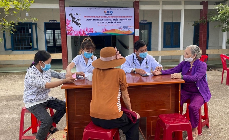 Trong khuôn khổ hành trình, Tỉnh đoàn - Hội LHTN Việt Nam tỉnh phối hợp với Hội Thầy thuốc trẻ tỉnh tổ chức chương trình “Khám bệnh, phát thuốc cho người dân” tại xã Đa Kai, huyện Đức Linh. Chương trình đã tổ chức khám bệnh và phát thuốc cho hơn 200 người dân có hoàn cảnh khó khăn, đồng bào dân tộc thiểu số, người già, người cao tuổi thuộc diện gia đình chính sách, gia đình có công với cách mạng. Đoàn y, bác sĩ còn đến tận nhà những người dân khó khăn trong việc di chuyển để hỗ trợ khám bệnh, phát thuốc.