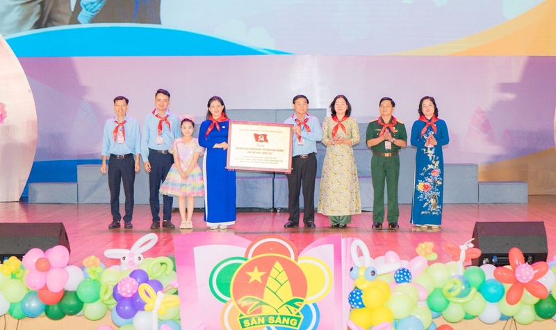 Lãnh đạo Tỉnh ủy, Hội đồng nhân dân, Ủy ban nhân dân, Ủy ban Mặt trận Tổ quốc Việt Nam tỉnh Bình Dương trao tặng Đại hội bảng đồng với chủ đề “Thiếu nhi Bình Dương – Học tập tốt, rèn luyện chăm, Xứng danh Cháu ngoan Bác Hồ, Mầm non của Đảng Cộng sản Việt Nam”.