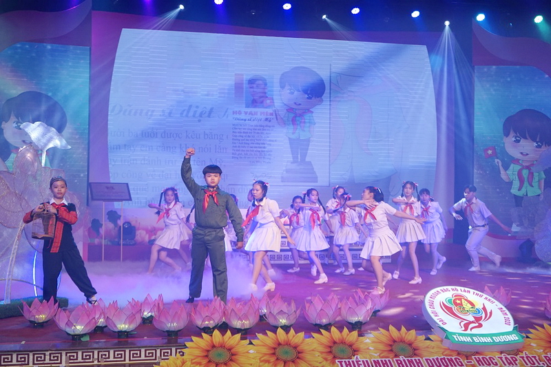 Với niềm biết ơn và kính yêu vô hạn, Đại hội đã dành những giây phút thành kính tưởng nhớ Chủ tịch Hồ Chí Minh, vị lãnh tụ vĩ đại của Đảng, của dân tộc và của nhân dân ta, nhà văn hóa kiệt xuất của thế giới. Người đã cùng Đảng ta tổ chức, rèn luyện các thế hệ thanh thiếu niên và lớp lớp nhi đồng Việt Nam trở thành những lớp người ưu tú, phấn đấu quên mình vì lý tưởng độc lập, tự do và chủ nghĩa xã hội. Đáp lại tình thương yêu của Bác, lớp lớp thiếu nhi Bình Dương nguyện ra sức thi đua học tập và rèn luyện, thực hiện tốt 5 điều Bác Hồ dạy, phấn đấu trở thành những con ngoan, trò giỏi, đội viên tốt, cháu ngoan Bác Hồ.