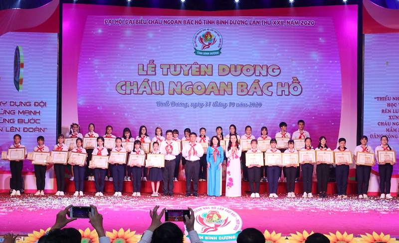 Tại Đại hội, các đại biểu đã được xem chương trình sân khấu hóa truyền thống “Rạng ngời trang sử Đội – Vững bước tiến lên Đoàn”; xem phóng sự các gương Cháu ngoan Bác Hồ tiêu biểu. Nhằm biểu dương và khen thưởng những gương mặt Cháu ngoan Bác Hồ tiêu biểu xuất sắc trong 02 năm học 2018 – 2019 và 2019 – 2020, Ủy Ban nhân dân tỉnh Bình Dương đã trao tặng Bằng khen cho 200 gương mặt thiếu nhi, đội viên Cháu ngoan Bác Hồ tỉnh Bình Dương năm 2020.