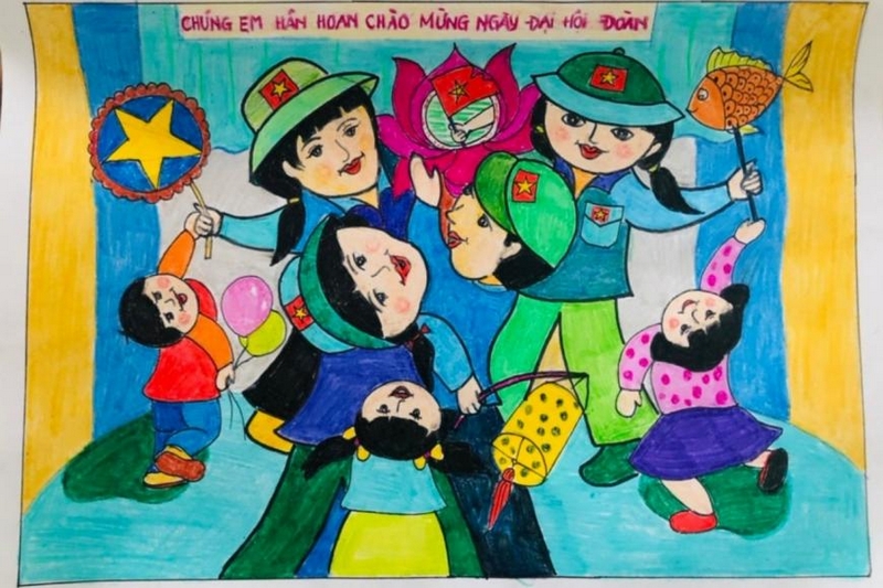 Những bức tranh rực rỡ sắc màu như lời động viên, cổ vũ, ca ngợi những hình ảnh cao đẹp, lòng biết ơn, sự tri ân của thiếu nhi dành cho các thầy cô giáo làm Tổng phụ trách Đội, các anh chị đoàn viên, thanh niên, các cấp bộ Đoàn trong công tác bảo vệ, chăm sóc, giáo dục đội viên, thiếu niên, nhi đồng; ca ngợi những việc làm tốt, những tấm gương thiếu nhi tiêu biểu trong học tập, rèn luyện, làm theo 5 điều Bác Hồ dạy.