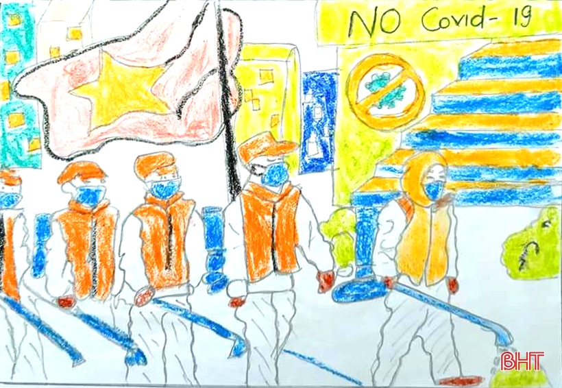 Những bức tranh cũng giúp các em gửi gắm sự tri ân các lực lượng trên tuyến đầu phòng, chống dịch...