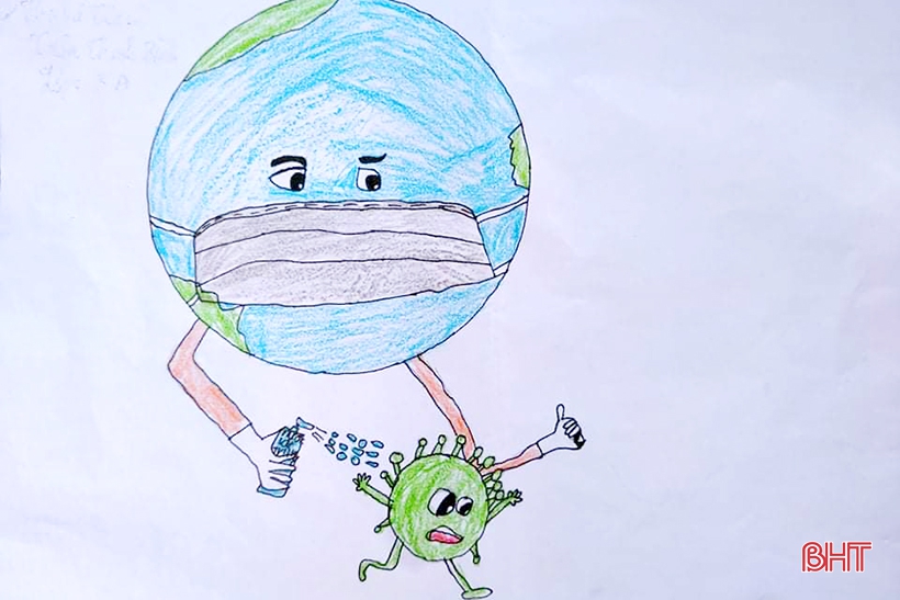 Những thông điệp về dấu hiệu nhận biết, cách phòng ngừa dịch bệnh như đeo khẩu trang, rửa tay bằng xà phòng, không vứt khẩu trang bừa bãi, phun tiêu độc khử trùng… được các em truyền tải qua bức tranh của mình