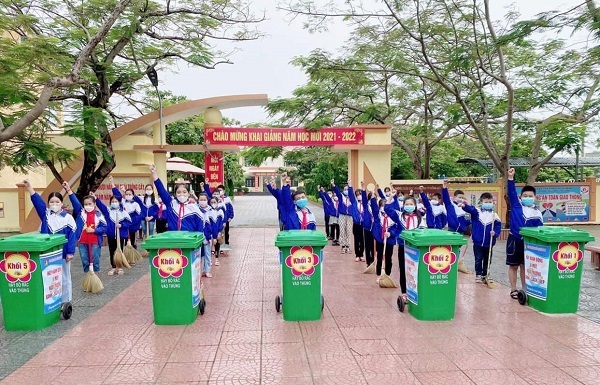 Trường tiểu học Lộc Ninh, TP. Đồng Hới thực hiện mô hình “Thùng rác xanh di động”