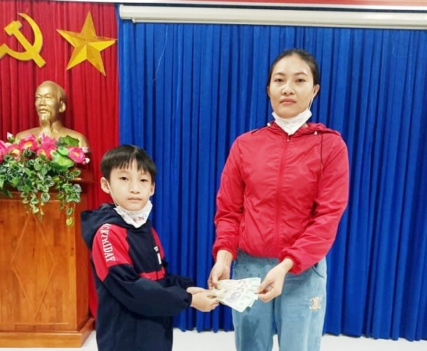 Em Nguyễn Bình Nguyên Lớp 2A Trường TH Châu Hóa, huyện Tuyên Hóa đã nhặt được 4 triệu đồng và trả lại cho người đánh mất