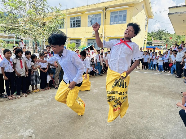 Bên cạnh đó, với mong muốn mang lại một Tết Trung thu ấm áp, thấm đượm nghĩa tình và tạo sân chơi lành mạnh, bổ ích cho các em thiếu nhi vùng cao, sáng ngày 23/9, Ban Tổ chức đã tổ chức các trò chơi và “Bữa trưa yêu thương” cho 700 em học sinh Trường Tiểu học THCS Sơn Bua, huyện Sơn Tây.