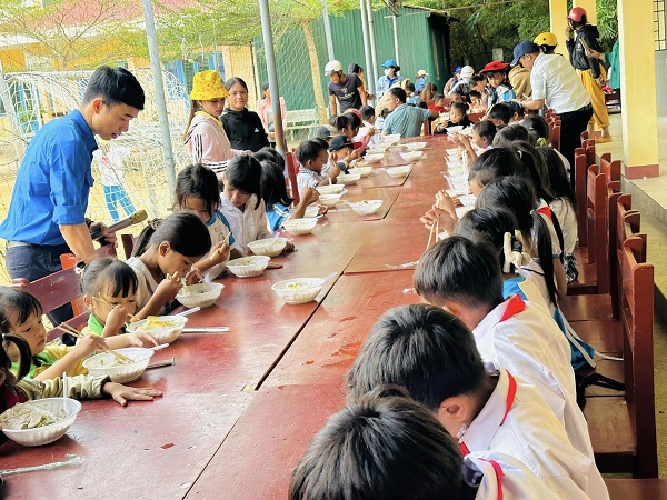 "Bữa trưa yêu thương" được tổ chức cho 700 em học sinh trường Tiểu học, THCS Sơn Bua, huyện Sơn Tây.