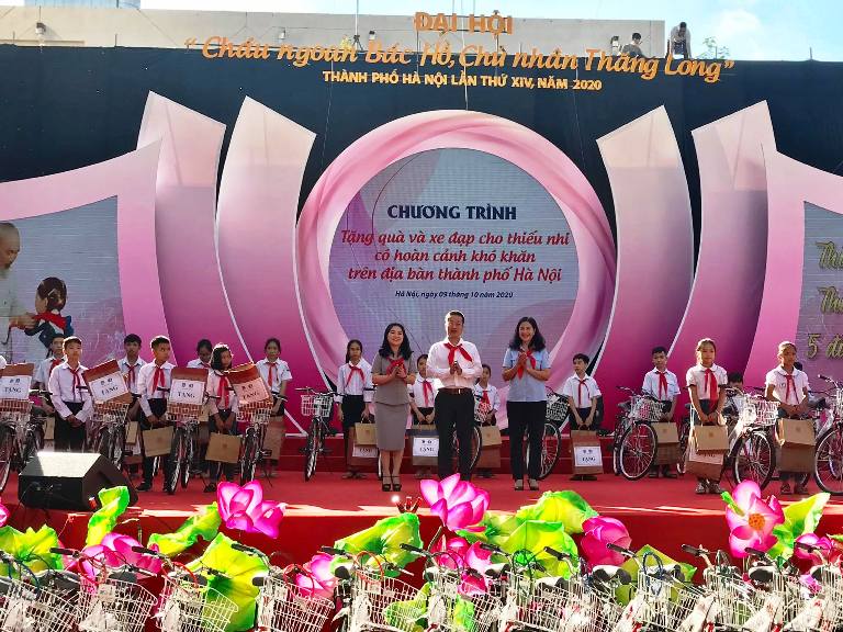 Trong khuôn khổ chương trình Đại hội, chiều 9/10, Đoàn đại biểu thiếu nhi Thủ đô tới thăm hỏi các gia đình chính sách, người có công với cách mạng tại quận Hoàn Kiếm và trao tặng cho 90 em học sinh hoàn cảnh khó khăn có tinh thần vượt khó vươn lên trong học tập mỗi em nhận được 1 chiếc xe đạp và nhiều phần quà tặng khác như bánh kẹo, đồ dung học tập. Tổng giá trị quà tặng hơn 150 triệu đồng.