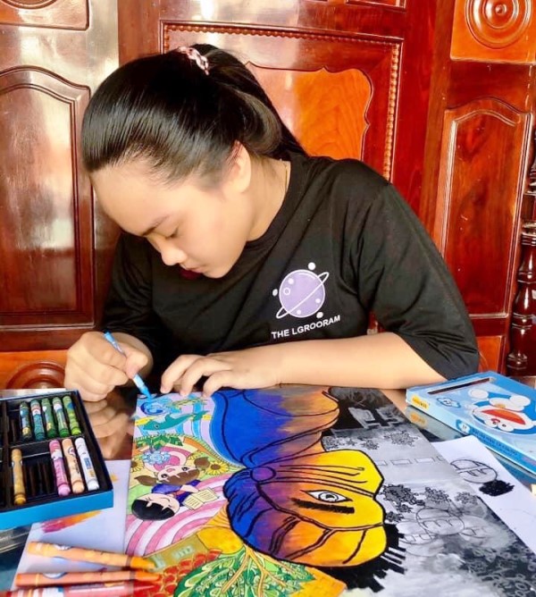 Thúy An chia sẻ: “Vì đam mê hội họa và văn học cũng như muốn rèn luyện nét chữ và trao gửi những tâm tư, suy nghĩ của mình nên con tham gia cả hai chương trình thi vẽ và viết. Con tìm hiểu qua báo chí, đài phát thanh, truyền hình, mạng xã hội, ...để có được ý tưởng và những thông tin cần thiết từ đó truyền tải suy nghĩ, thông điệp của mình đến người đọc, người xem một cách chân thực nhất. Con mong rằng sẽ đóng góp một điều gì đó ể kêu gọi và cảm ơn mọi người, cảm ơn Tổ quốc đã luôn mạnh mẽ chẳng bao giờ lùi bước trước đại dịch này".