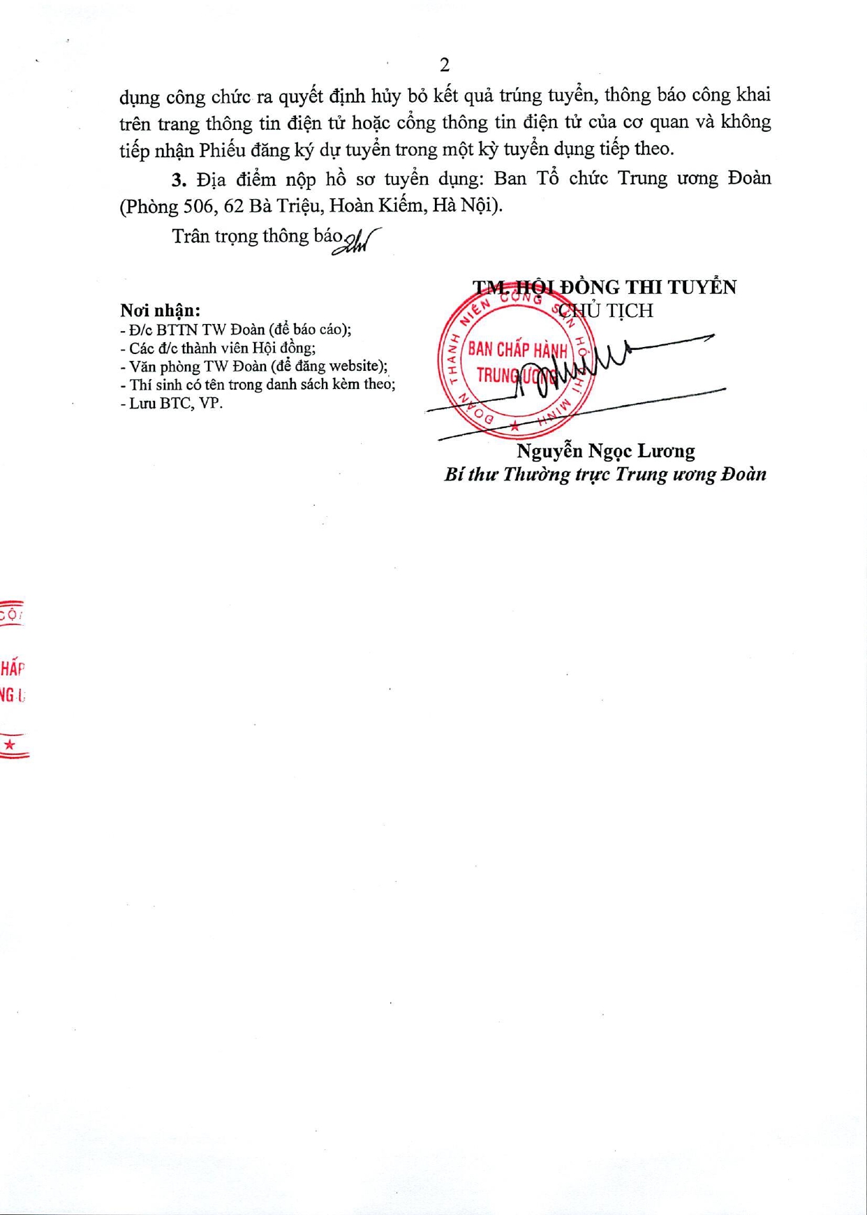 Thông báo công nhận kết quả trúng tuyển kỳ thi tuyển công chức cơ quan T.Ư Đoàn năm 2023